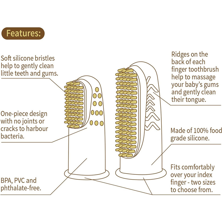 Caution: Check condition regularly - replace if this product shows signs of damage. Infants are to be supervised at all times. Please do not use this product for any other use other than its intended one. The silicone finger brush is to be operated by an adult and can be a choking hazard if given to small children to use on their own. These products are not teethers and although designed to provide teething relief, they are not designed to be chewed.